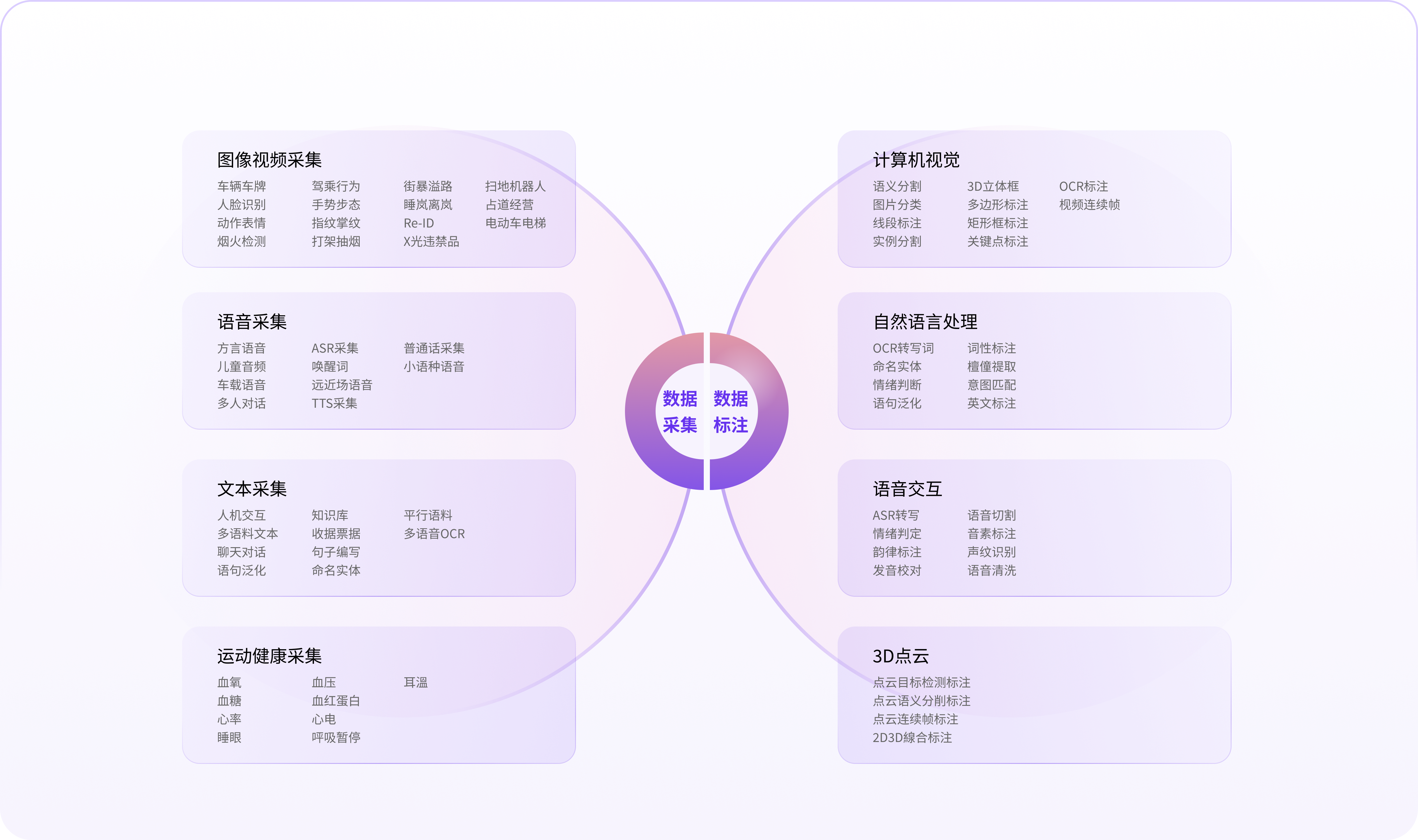 2000方办公场所,配备10+的功能采集区,支持运动健康、图像采集、语音采集、文本采集等,通过学校,医院,社区等资源输出高质量数据集。